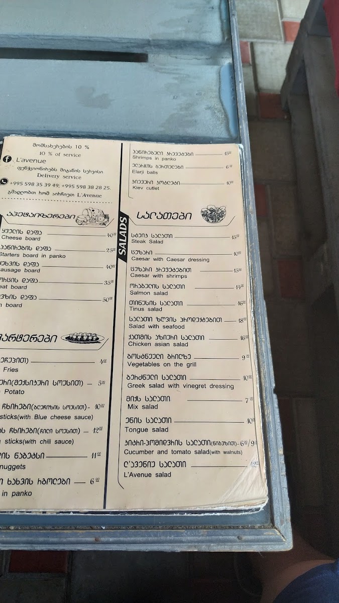 For more information or to make an inquiry, feel free to give them a call at +995 598 35 39 49. Make sure to stop by L'avenue – a warm welcome and great flavors await!